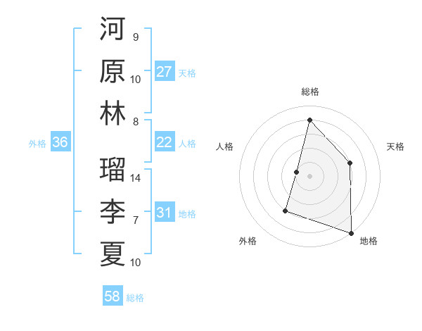 河原林 瑠李夏さんを姓名の画数から五運を鑑定