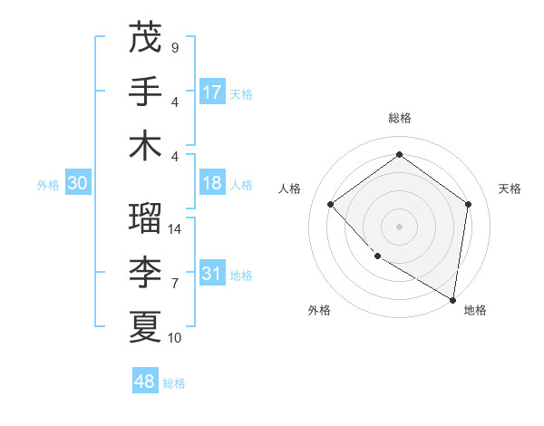 茂手木 瑠李夏さんを姓名の画数から五運を鑑定