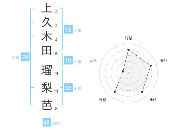 上久木田 瑠梨芭さんの外格は29画の4点