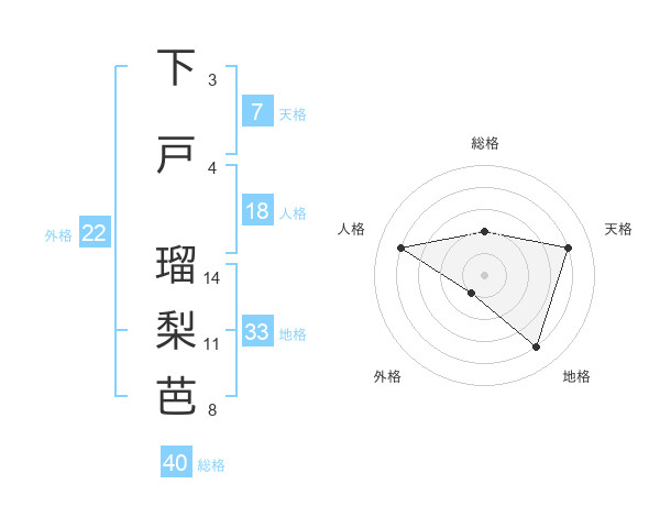 下戸 瑠梨芭さんを姓名の画数から五運を鑑定