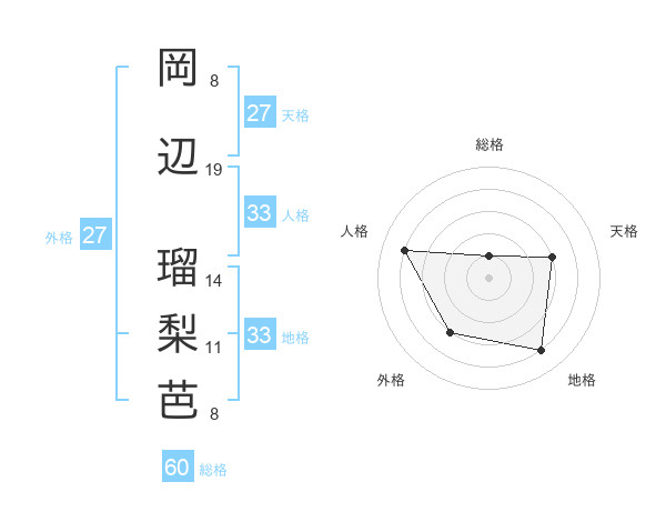 岡辺 瑠梨芭さんの地格は33画の4点!