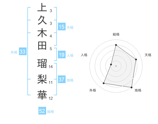上久木田 瑠梨華さんを姓名の画数から五運を鑑定