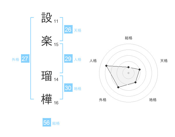 設楽 瑠樺さんを姓名の画数から五運を鑑定