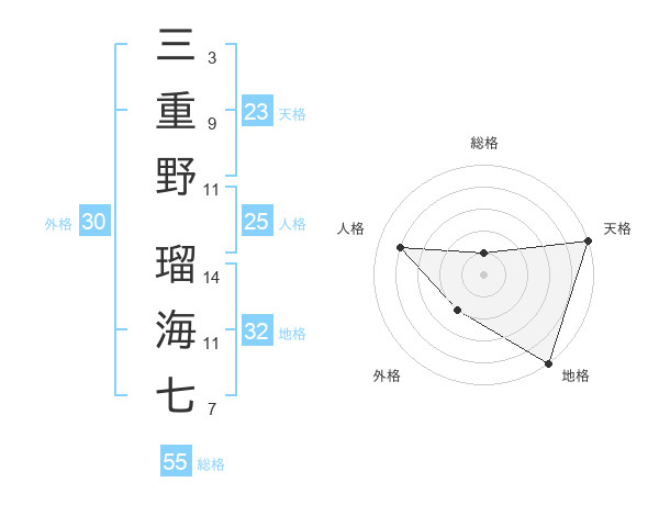 三重野 瑠海七さんを姓名の画数から五運を鑑定