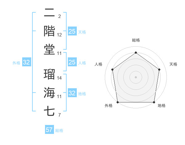 二階堂 瑠海七さんの外格は32画の5点!