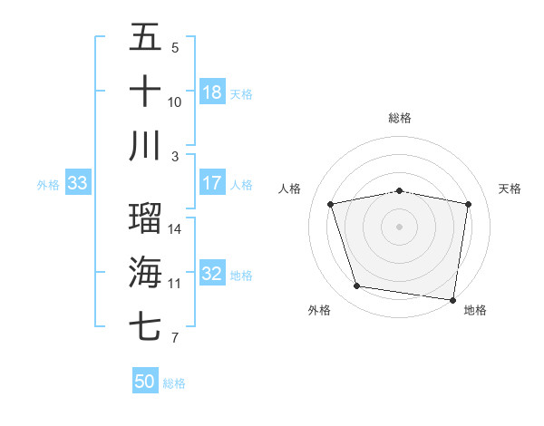 五十川 瑠海七さんを姓名の画数から五運を鑑定
