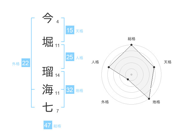 今堀 瑠海七さんを姓名の画数から五運を鑑定