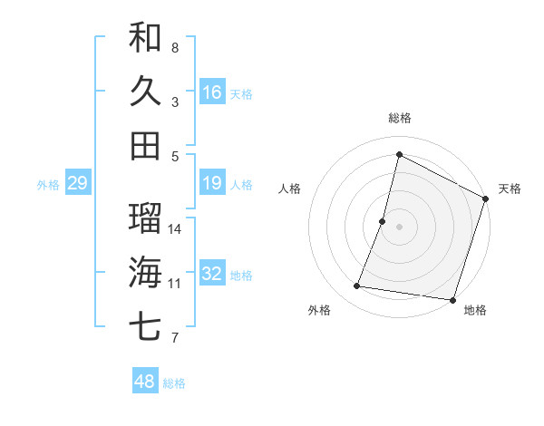 和久田 瑠海七さんを姓名の画数から五運を鑑定
