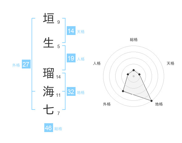 垣生 瑠海七さんを姓名の画数から五運を鑑定