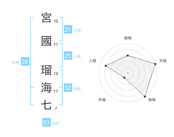 宮國 瑠海七さんを姓名の画数から五運を鑑定