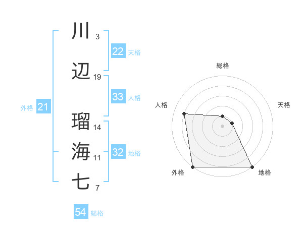 川辺 瑠海七さんを姓名の画数から五運を鑑定