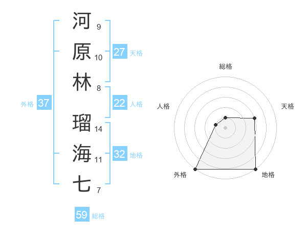 河原林 瑠海七さんの外格は37画の5点!