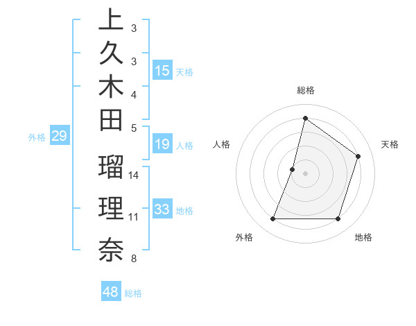 上久木田 瑠理奈さんの天格は15画の4点!
