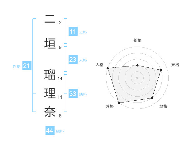 二垣 瑠理奈さんの総格は44画の2点!