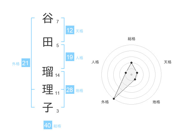 谷田 瑠理子さんを姓名の画数から五運を鑑定