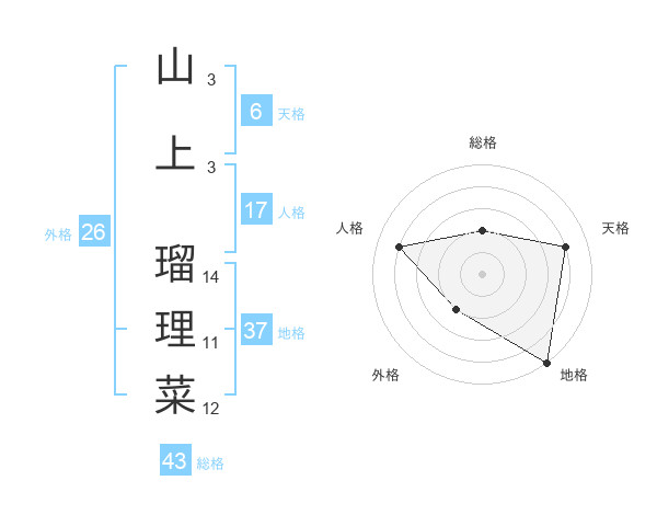 山上 瑠理菜さんの天格は6画の4点!