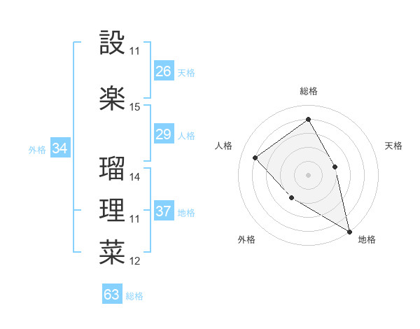 設楽 瑠理菜さんの総格は63画の4点