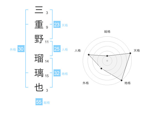 三重野 瑠璃也さんの天格は23画の5点!