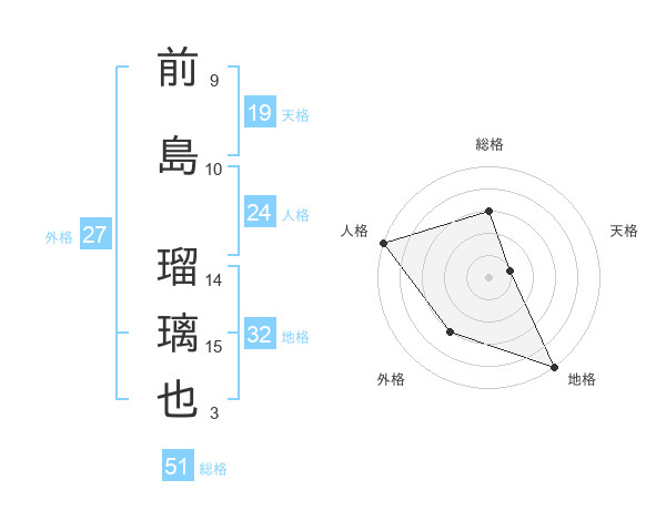 前島 瑠璃也さんを姓名の画数から五運を鑑定