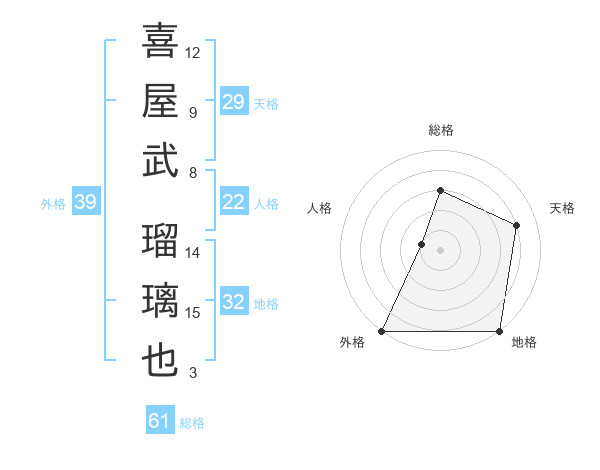 喜屋武 瑠璃也さんの外格は39画の5点!