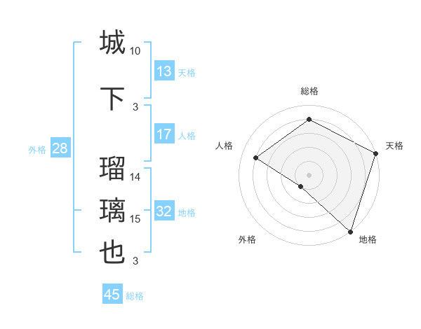 城下 瑠璃也さんを姓名の画数から五運を鑑定