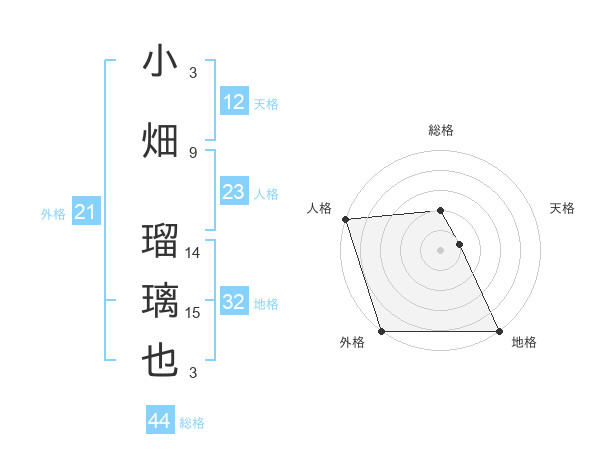 小畑 瑠璃也さんを姓名の画数から五運を鑑定