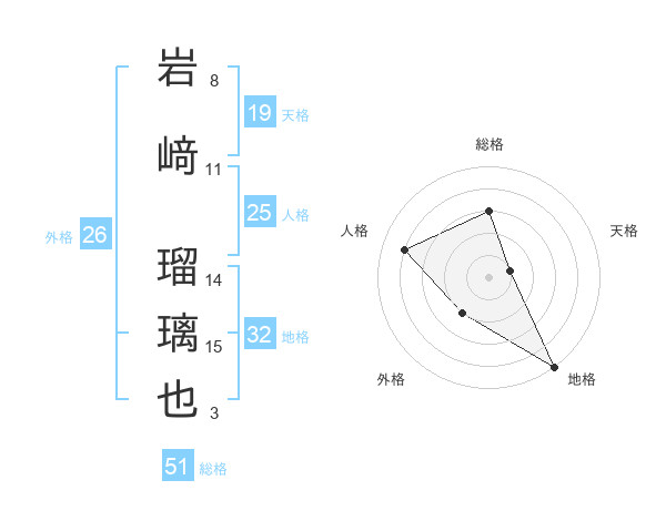 岩﨑 瑠璃也さんの総格は51画の3点!