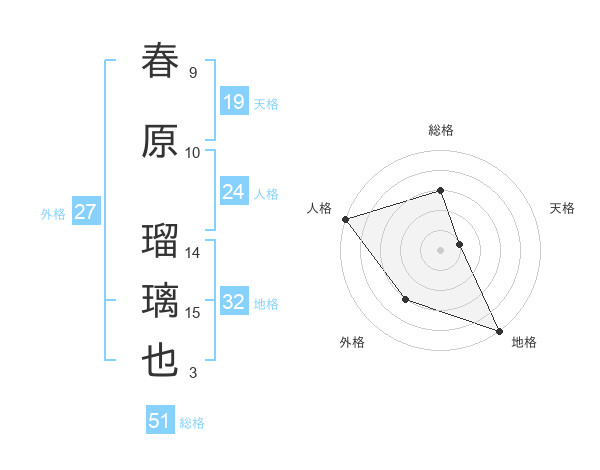 春原 瑠璃也さんの総格は51画の3点