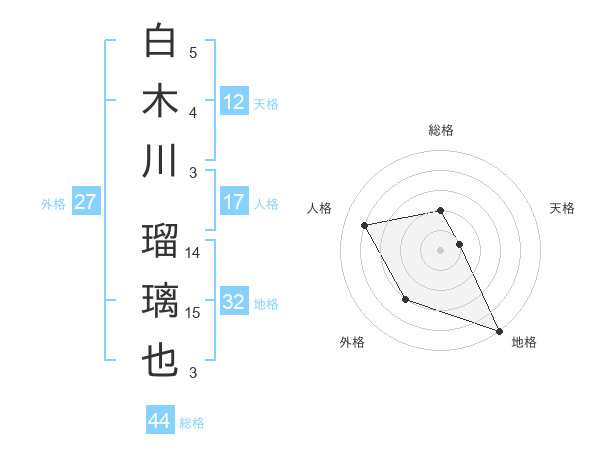 白木川 瑠璃也さんを姓名の画数から五運を鑑定
