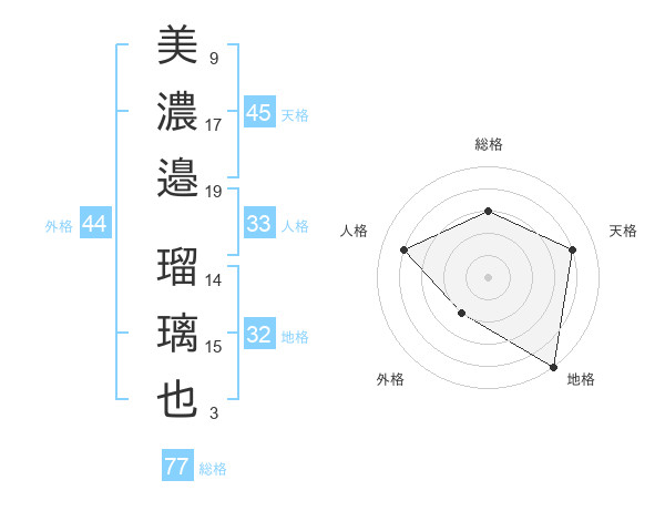 美濃邉 瑠璃也さんの総格は77画の3点!