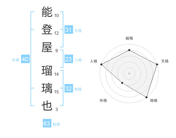 能登屋 瑠璃也さんを姓名の画数から五運を鑑定