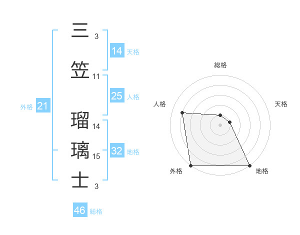 三笠 瑠璃士さんを姓名の画数から五運を鑑定