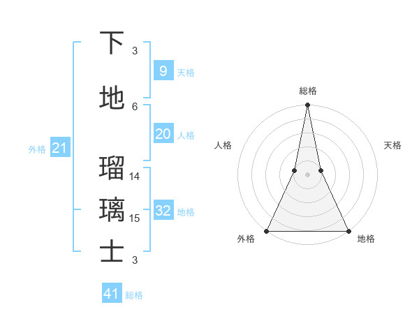下地 瑠璃士さんを姓名の画数から五運を鑑定