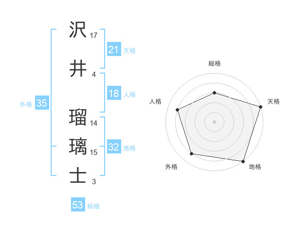 沢井 瑠璃士さんの天格は21画の5点!