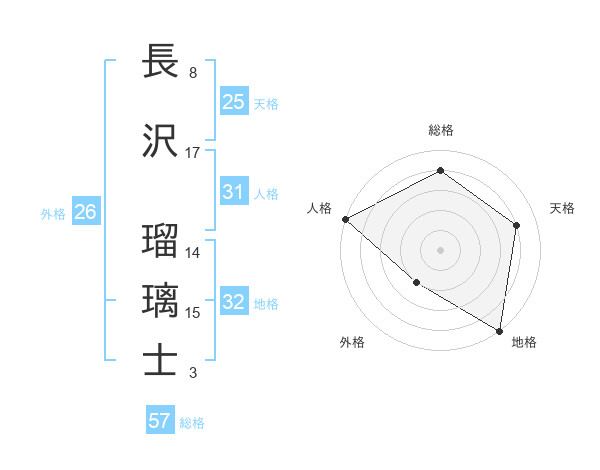 長沢 瑠璃士さんの総格は57画の4点!