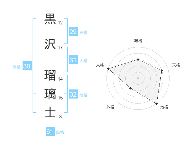 黒沢 瑠璃士さんを姓名の画数から五運を鑑定