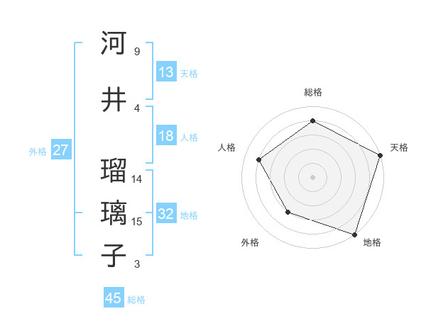 河井 瑠璃子さんを姓名の画数から五運を鑑定