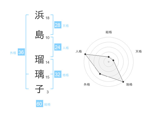 浜島 瑠璃子さんを姓名の画数から五運を鑑定