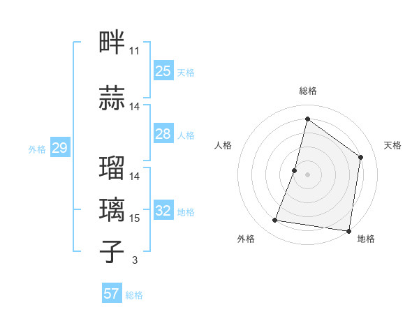 畔蒜 瑠璃子さんの地格は32画の5点!