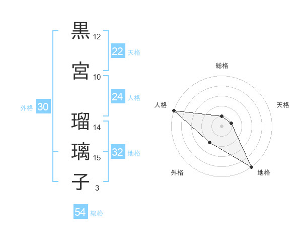 黒宮 瑠璃子さんの地格は32画の5点!
