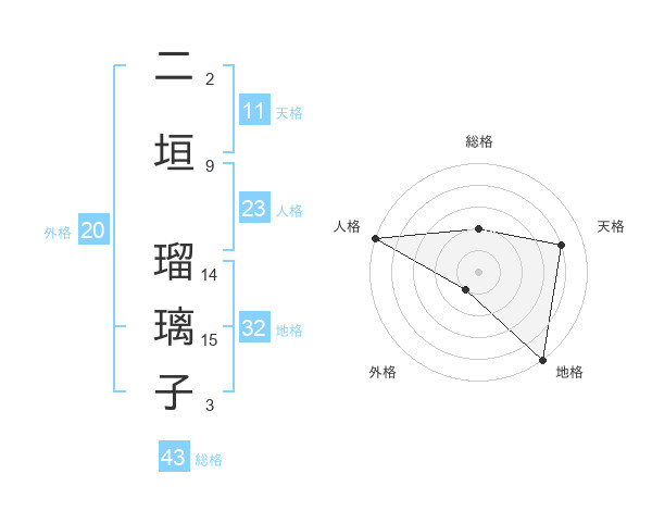 二垣 瑠璃子さんを姓名の画数から五運を鑑定