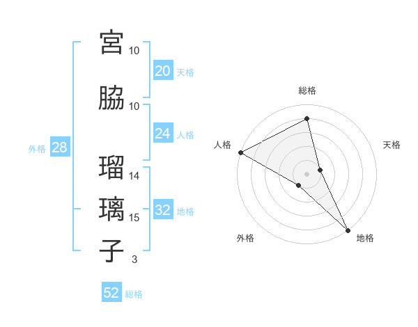 宮脇 瑠璃子さんの総格は52画の4点!