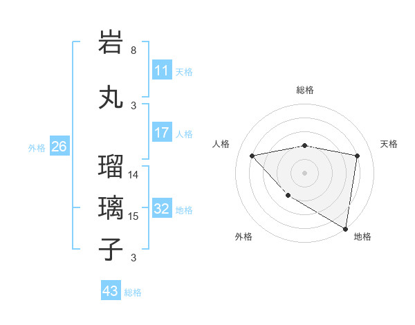 岩丸 瑠璃子さんを姓名の画数から五運を鑑定