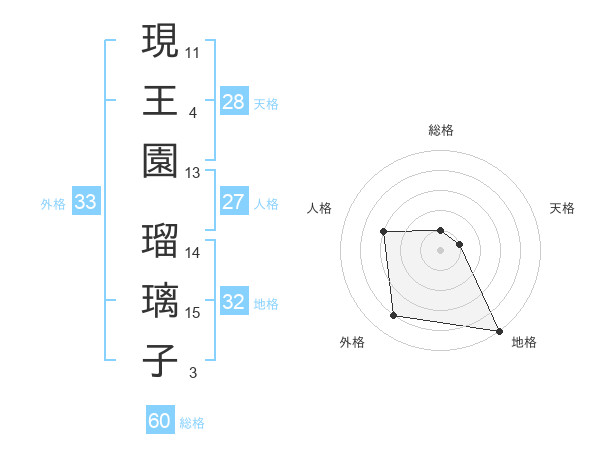現王園 瑠璃子さんを姓名の画数から五運を鑑定