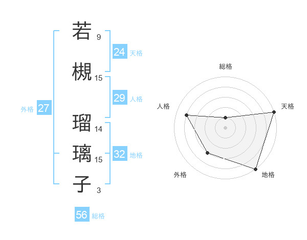 若槻 瑠璃子さんの天格は24画の5点!