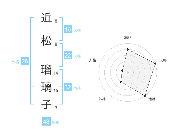 近松 瑠璃子さんの地格は32画の5点!