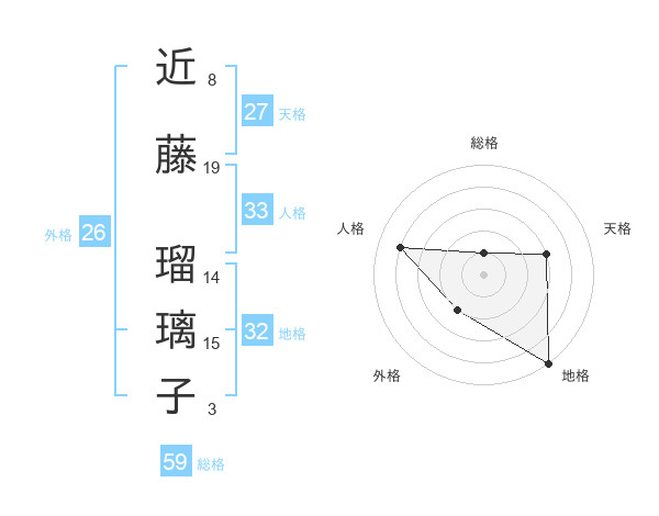 近藤 瑠璃子さんを姓名の画数から五運を鑑定