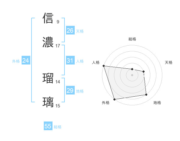 信濃 瑠璃さんの外格は24画の5点
