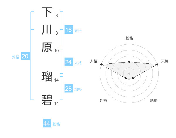 下川原 瑠碧さんを姓名の画数から五運を鑑定