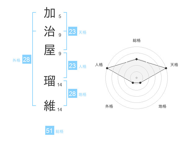 加治屋 瑠維さんの総格は51画の3点